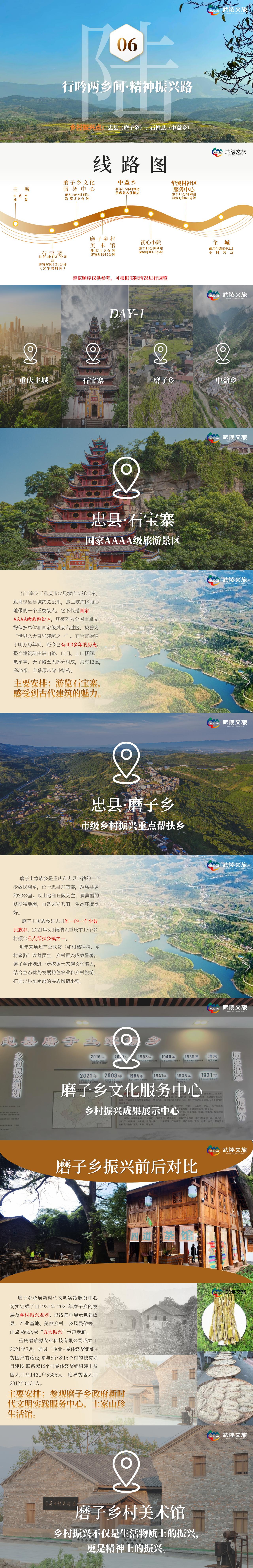 踏上《行吟兩鄉(xiāng)間·精神振興路》,開啟一場探尋鄉(xiāng)土根脈與時代精神的詩意旅程。從長江之濱,仰望石寶寨的凌云奇觀,感受歷史的厚重回響;深入鄉(xiāng)野,在磨子鄉(xiāng)文化服務(wù)中心觸摸淳樸民風(fēng),于磨子鄉(xiāng)村美術(shù)館邂逅藝術(shù)與生活的交融。走進(jìn)中益鄉(xiāng),見證鄉(xiāng)村振興的生動實(shí)踐;步入初心小院,聆聽奮斗者的動人故事;抵達(dá)華溪村社區(qū)服務(wù)中心,感受煥然一新的鄉(xiāng)村活力。這條線路,串聯(lián)起壯麗的自然饋贈、深厚的文化積淀與蓬勃的時代脈搏。讓我們沿著這條精神煥新之路,感受鄉(xiāng)土的深情呼喚,汲取奮進(jìn)的力量,共同見證并融入這片熱土上生生不息的振興圖景。背上行囊,讓腳步丈量希望,讓心靈回歸原鄉(xiāng)。